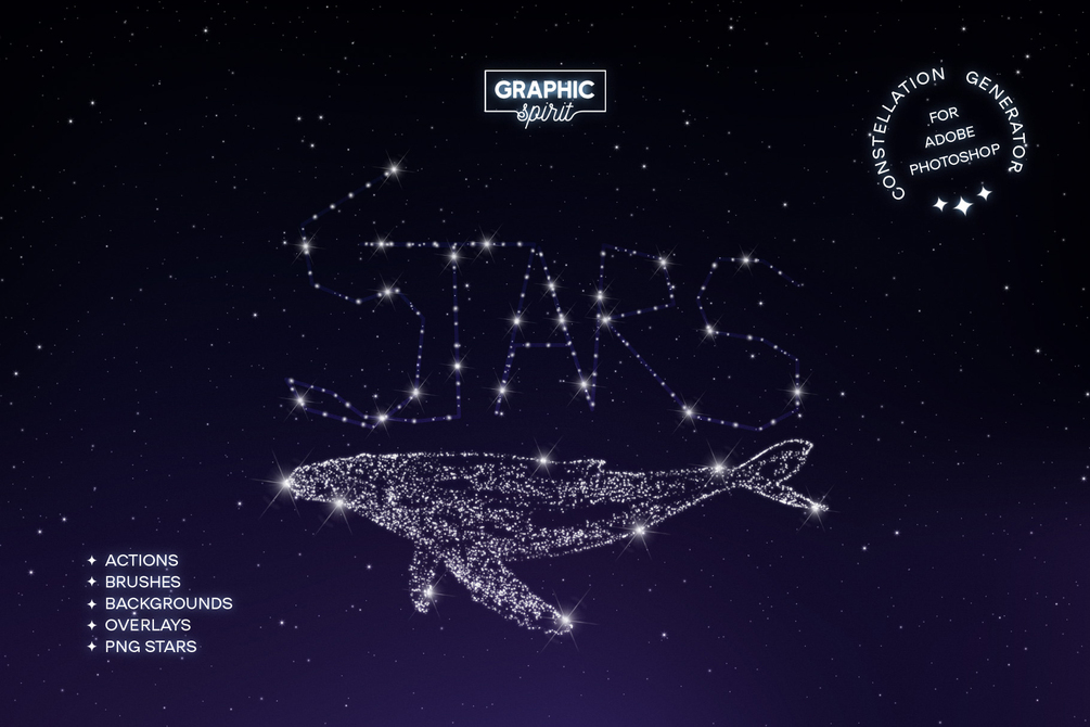 Constellation Generator for Adobe Photoshop is a fantastic effect for your creativity! With it, you can easily turn any text or graphic into a bewitching constellation.
