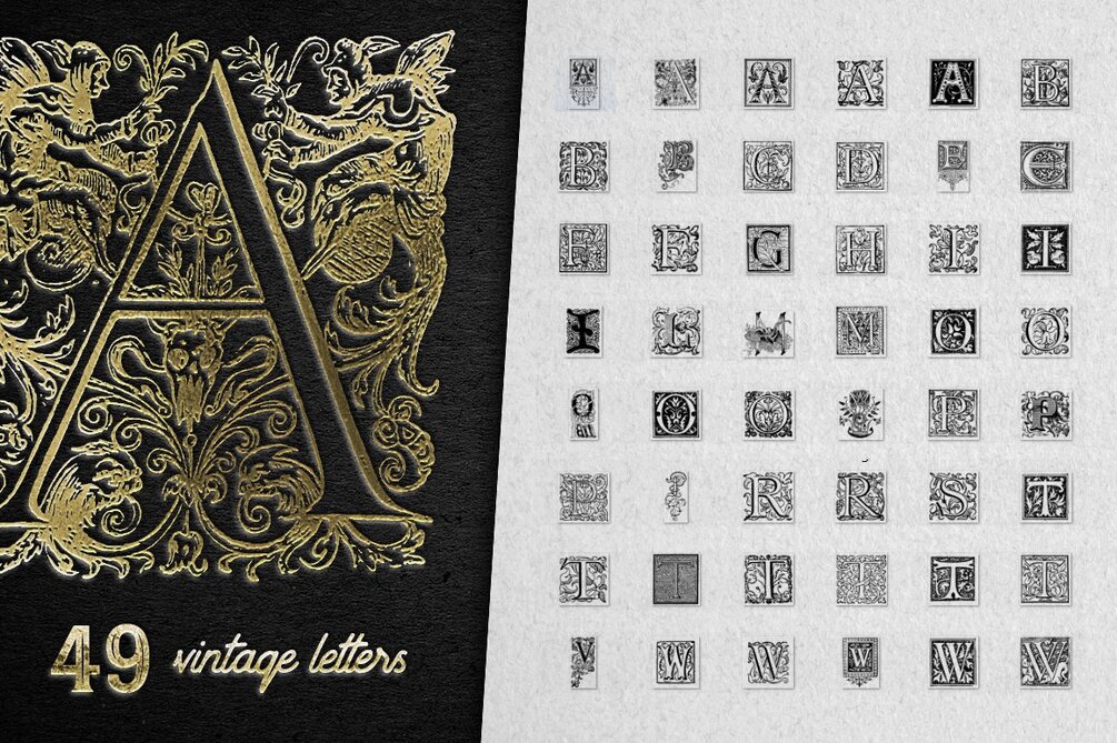 - 49 vintage letters (A B C D E F G H I L M O P R S T V W)