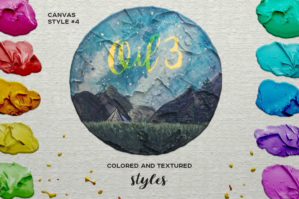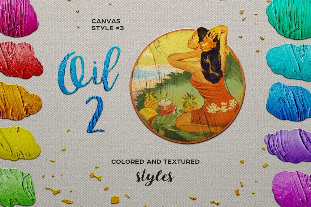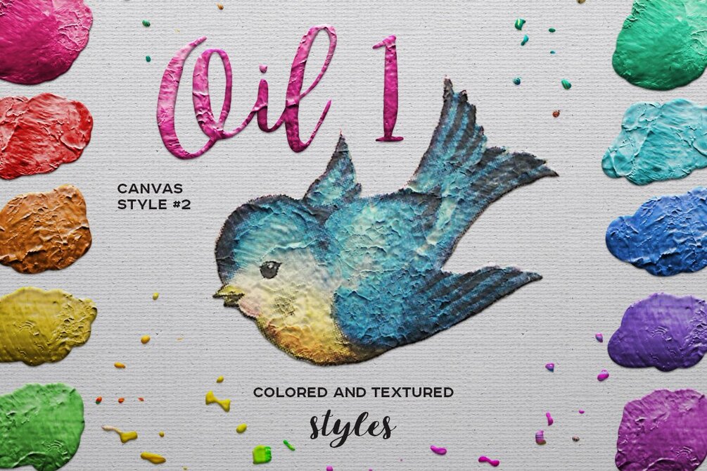 Oil painting styles.Each set has preset color styles + one style that puts paint relief on any layer without changing its color: