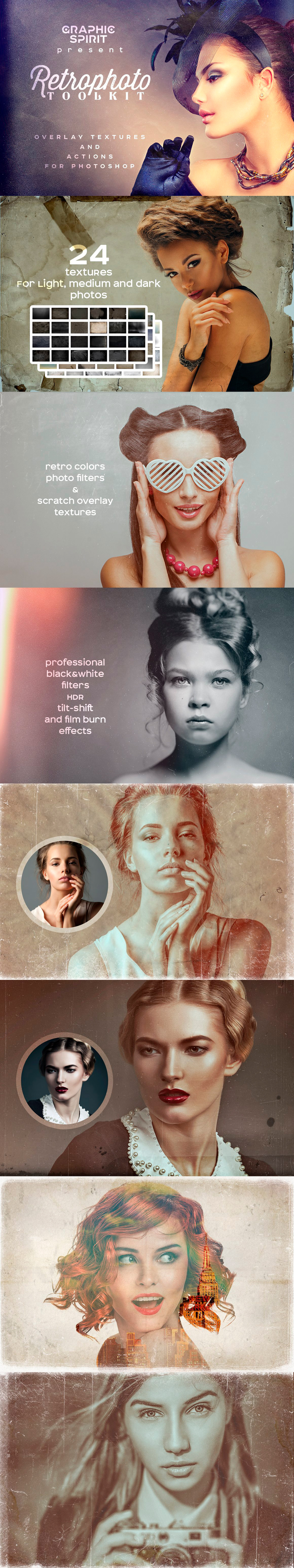 Universal toolkit for processing images in a retro style. This toolkit must have for photographers, designers, and all Photoshop users!