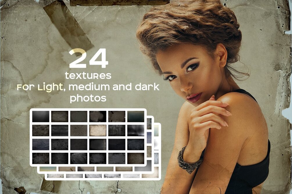 - Overlay textures actions (paper for dark photo, for medium photo, for light photo)
