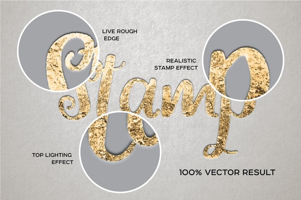 Using styles complemented by the action, you can get a variety of 100% vector effect foil directly in Illustrator. Work with Illustrator CS6 and CC version with CMYK and RGB mode.